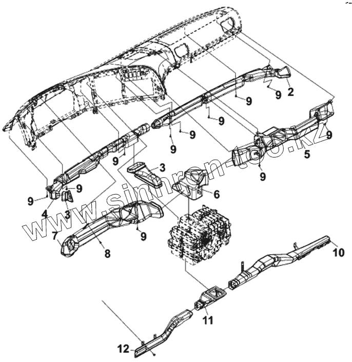 Каталог запасных частей к технике: DongFeng DFL-4181A. Воздушный патрубок отопления