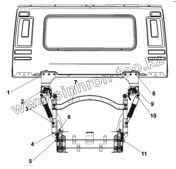 Каталог запасных частей к технике: DongFeng DFL-4181A. Задняя подвеска кабины
