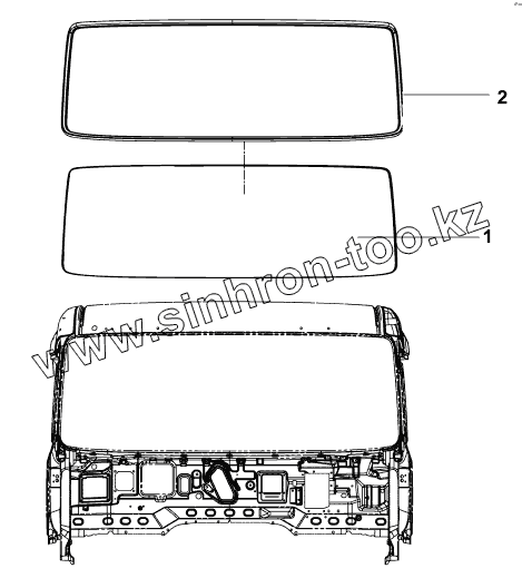 Ветровое стекло в сборе (включая детали №1-2)