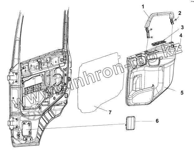 Каталог запасных частей к технике: DongFeng DFL-4251A. 6102B-C0104 Отделка передней правой двери