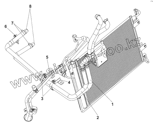 Каталог запасных частей к технике: DongFeng DFL-4251A. 8101C-C0104 Входной и выходной патрубок отопителя