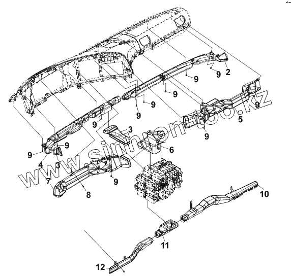 Верхний воздуховод со стороны водителя