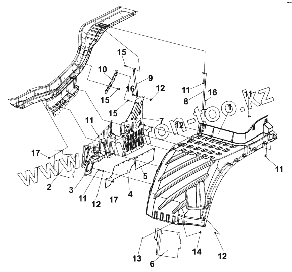 Задний левый продольный брызговик в сборе