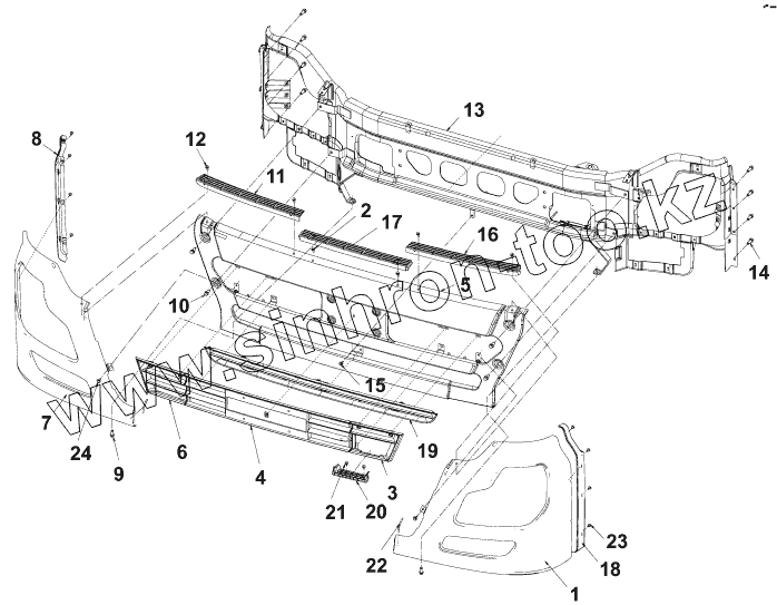 Каталог запасных частей к технике: DongFeng DFL-4251A. 8406A-C0100 Передний бампер
