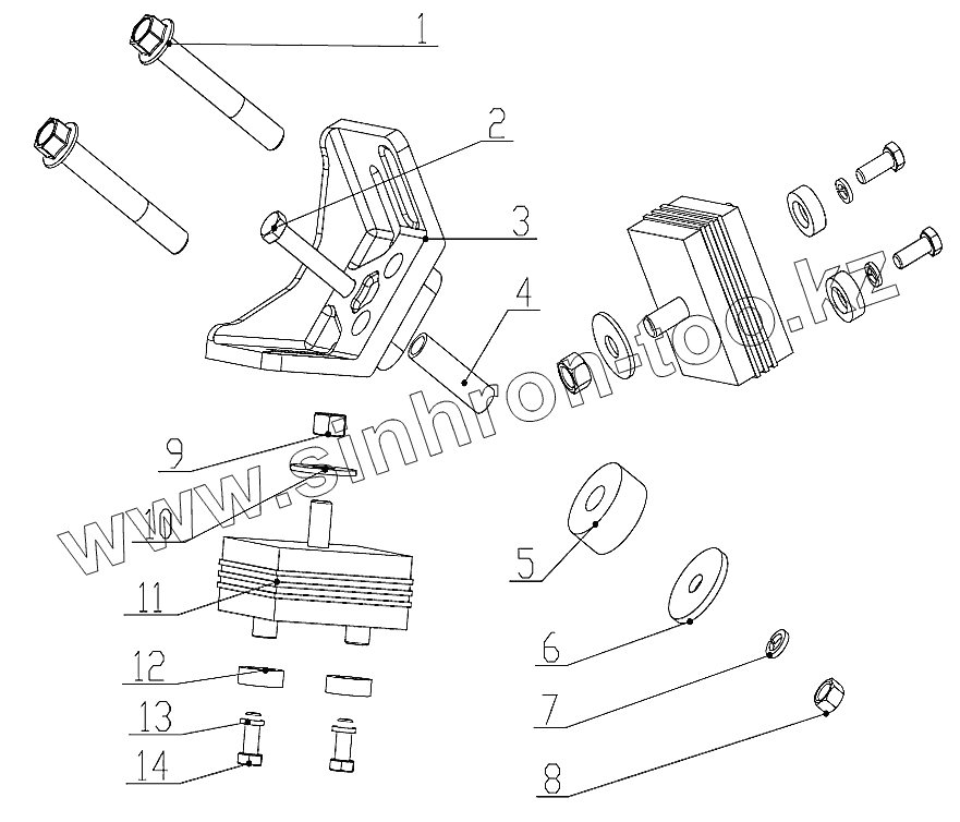 Каталог запасных частей к технике: DongFeng DFL-4251AXA Euro3. 1001C-K2000 Задняя подвеска двигателя