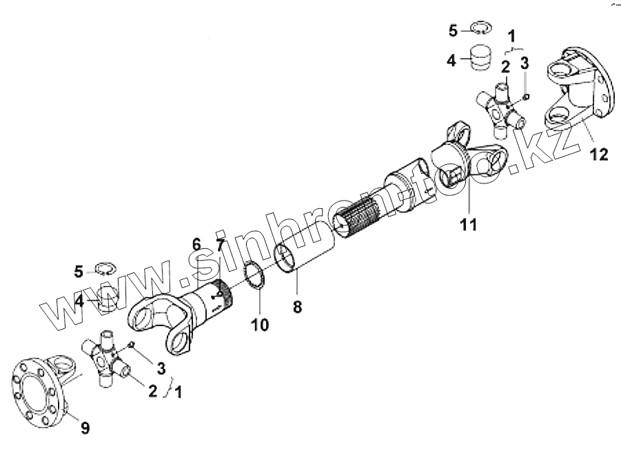 Каталог запасных частей к технике: DongFeng DFL-4251AXA Euro3. 2201A-Е55 Карданный вал среднего моста