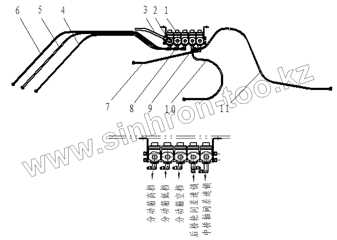Шланг в сборе - между электропневмоклапаном и дифференциалом межосевой блокировки среднего и заднего мостов