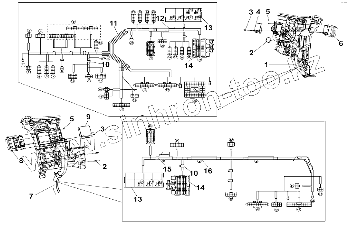 Каталог запасных частей к технике: DongFeng DFL-4251AXA Euro3. 3724D-C0167 Пучок проводов в кабине