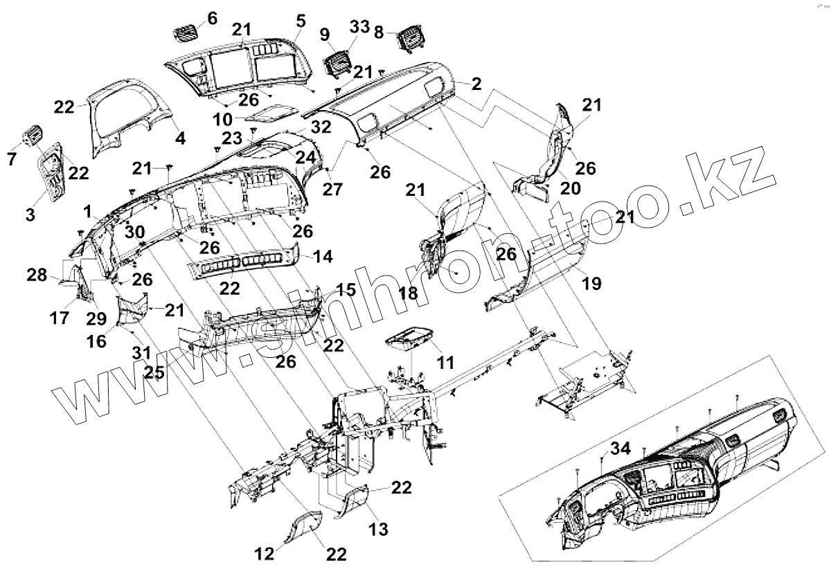 Средний нижний защитный кожух панели приборов со стороны пассажира