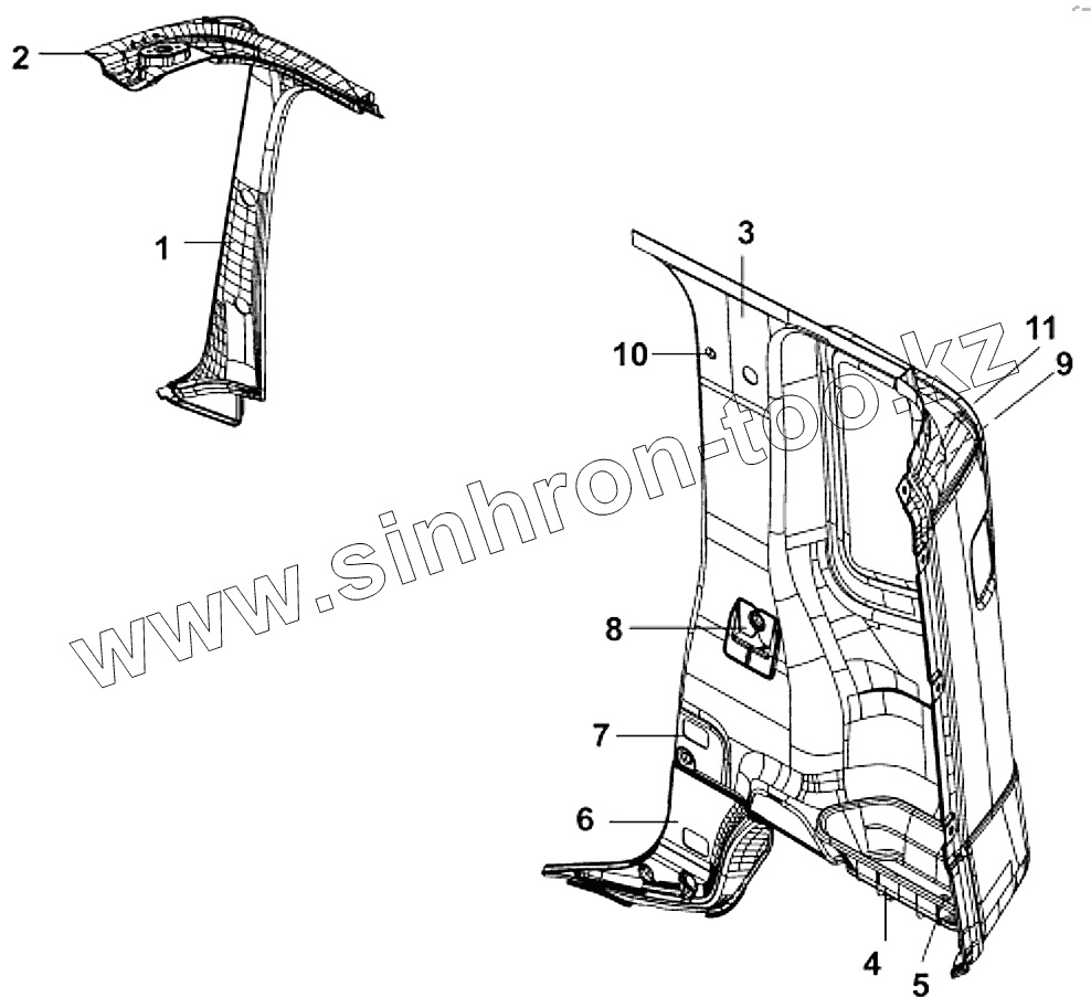 Каталог запасных частей к технике: DongFeng DFL-4251AXA Euro3. 5402B-C0100 Внутренняя отделка правой боковины