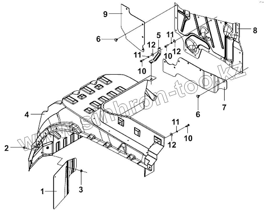 Каталог запасных частей к технике: DongFeng DFL-4251AXA Euro3. 8403E-C0100 Левый внутренний брызговик