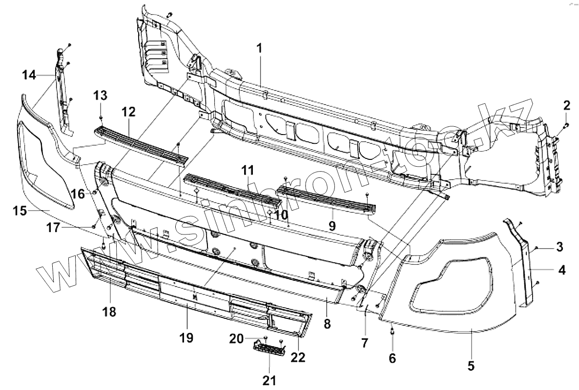Каталог запасных частей к технике: DongFeng DFL-4251AXA Euro3. 8406A-C0101 Передний бампер