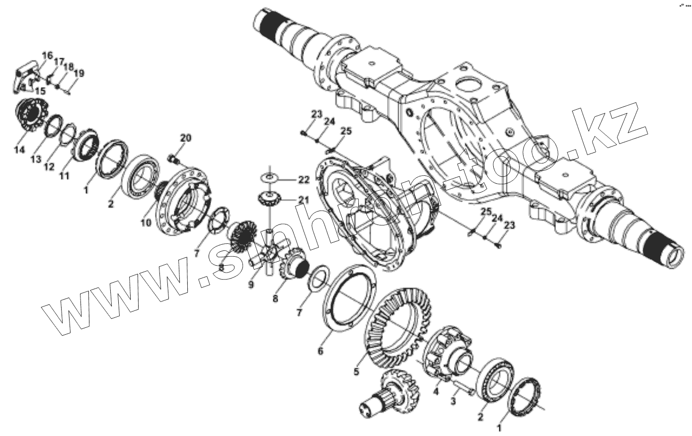 Каталог запасных частей к технике: DongFeng DFL-4251AXA Euro3. DH7131400305 Дифференциал среднего моста
