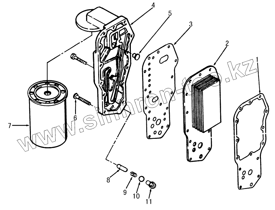 Каталог запасных частей к технике: DongFeng EQ-1074. Фильтр масляный и маслоохладитель