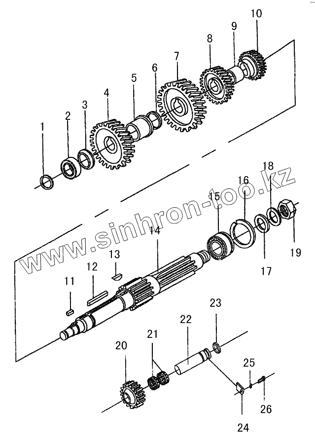 | 14 | 1700КТ-048 | Промежуточный вал коробки передач | |