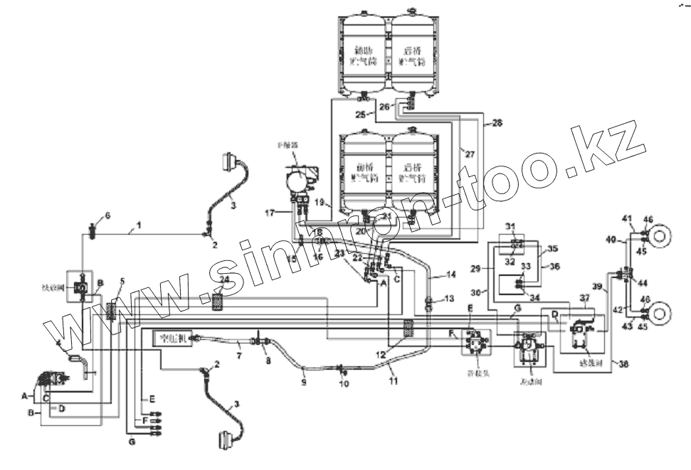Каталог запасных частей к технике: DongFeng L3251A3 (вар.). Diagram of Exhaust Brake Pipeline
