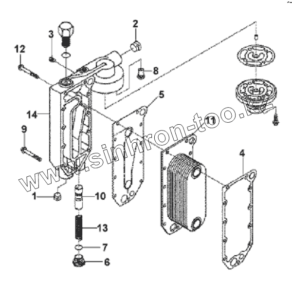 Каталог запасных частей к технике: DongFeng L3251A3 (вар.). Engine Oil Cooler Subassembly