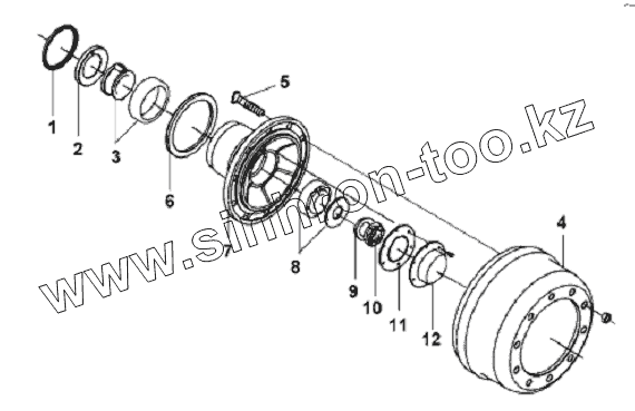 Каталог запасных частей к технике: DongFeng L3251A3 (вар.). Front Wheel Hub & Brake Drum Subassembly