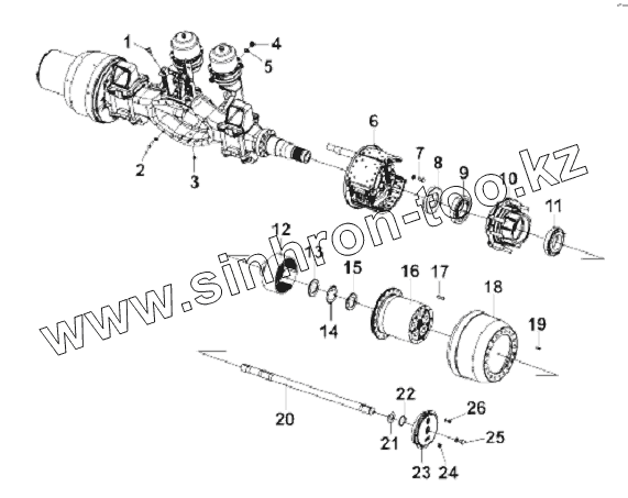 Каталог запасных частей к технике: DongFeng L3251A3 (вар.). Rear Axle Installation Subassembly