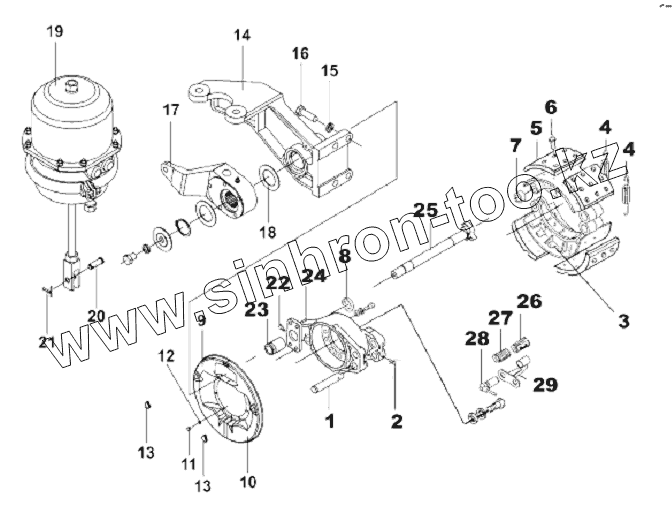 Каталог запасных частей к технике: DongFeng L3251A3 (вар.). Rear Left Brake Subassembly