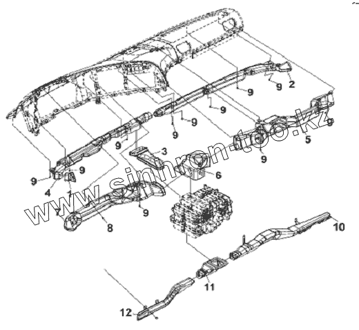 Каталог запасных частей к технике: DongFeng L3251A3 (вар.). Warm Air Blower Water Pipe Subassembly