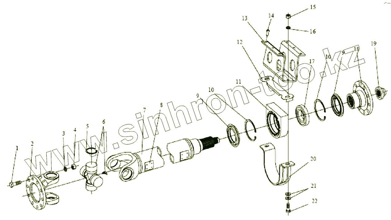 Каталог запасных частей к технике: FAW Altay-3310. Промежуточный вал средней оси