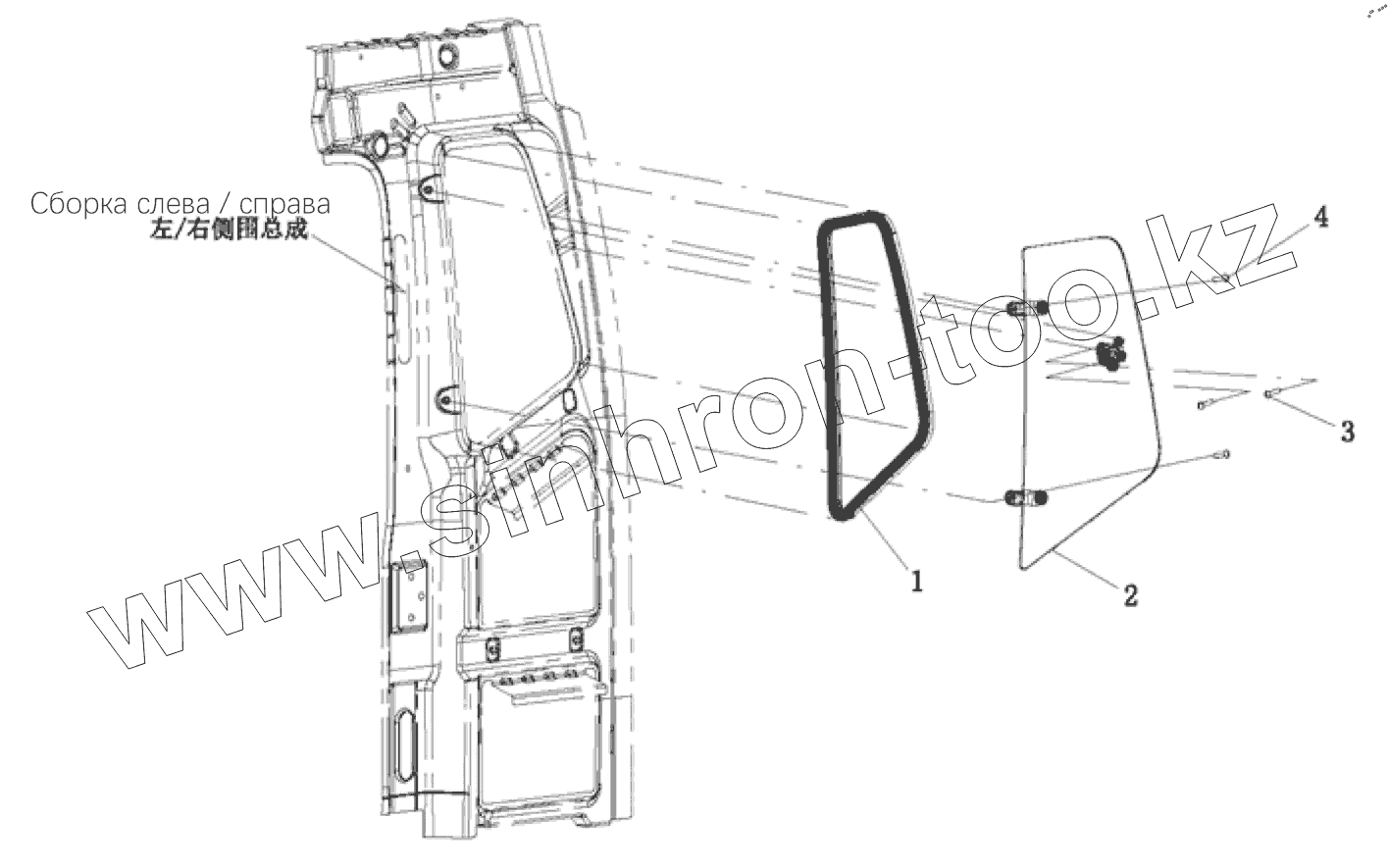 Сборка бокового стекла слева