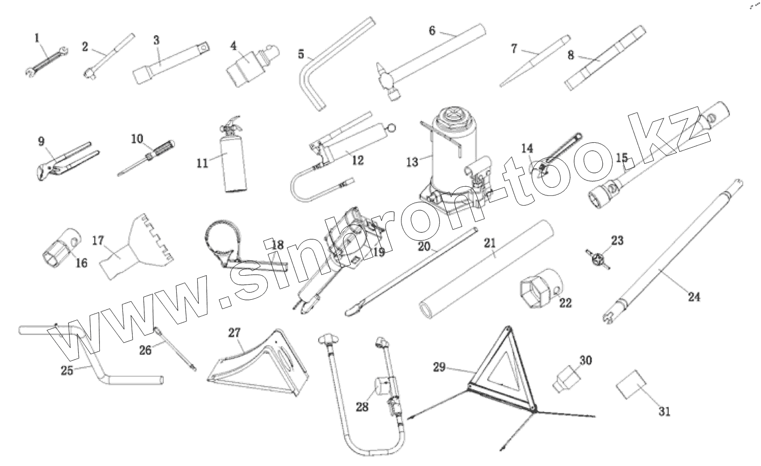 Каталог запасных частей к технике: FAW CA3250 (P66K24L1TE5Z). Бортовые инструменты и аксессуары