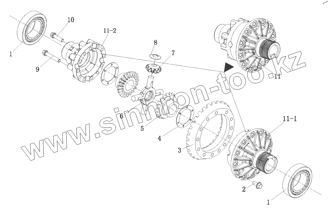 Каталог запасных частей к технике: FAW CA3250 (P66K24L1TE5Z). Дифференциал переднего моста в сборе