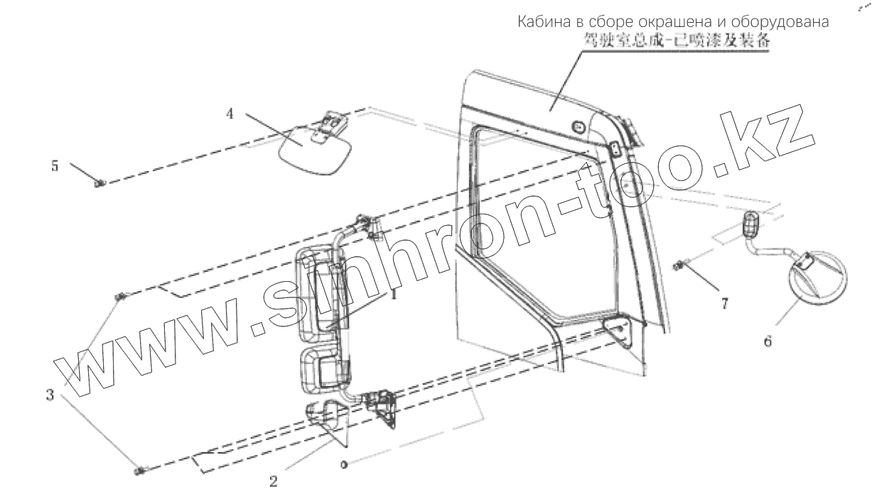 Каталог запасных частей к технике: FAW CA3250 (P66K24L1TE5Z). Правое наружное зеркало и пуховое зеркало