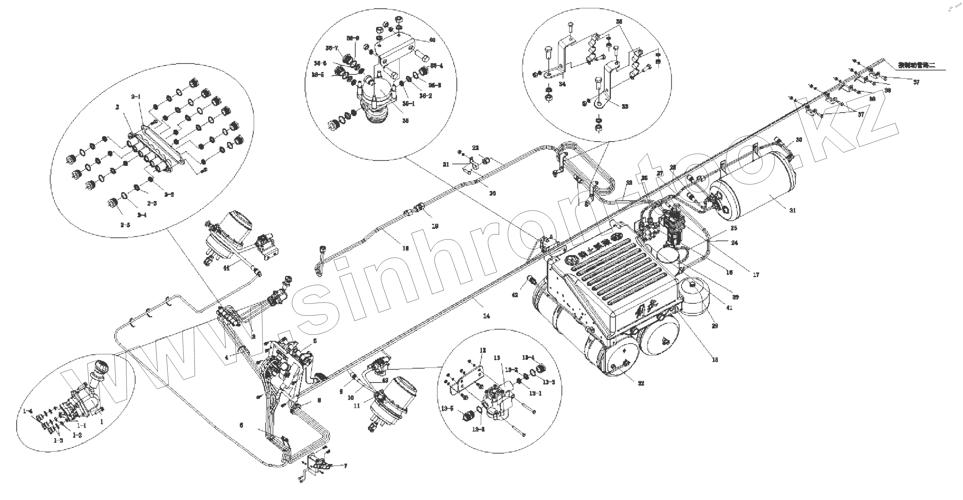 | 26 | 3506245A55R/B | Сборка воздушной трубки - Четырехконтурный защитный клапан 23 порта соединен со средней полостью двухполостного воздушного цилиндра | |