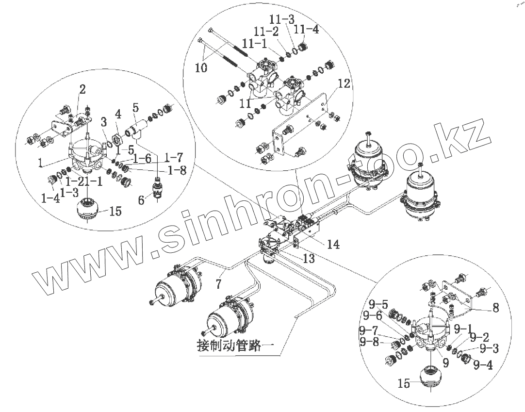 Каталог запасных частей к технике: FAW CA3250 (P66K24L1TE5Z). Тормозная магистраль (2)