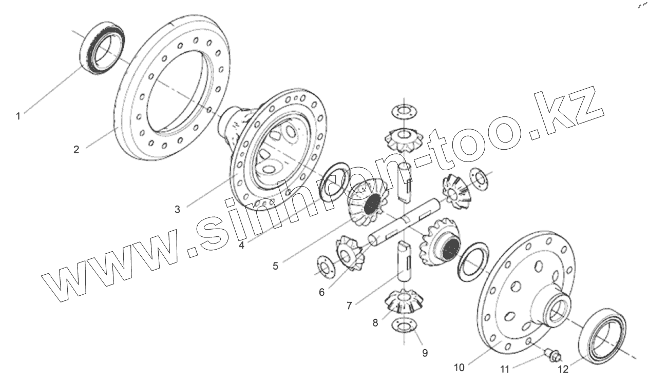 Каталог запасных частей к технике: FAW CA3250 (P66K24T1E5). Дифференциал среднего моста в сборе