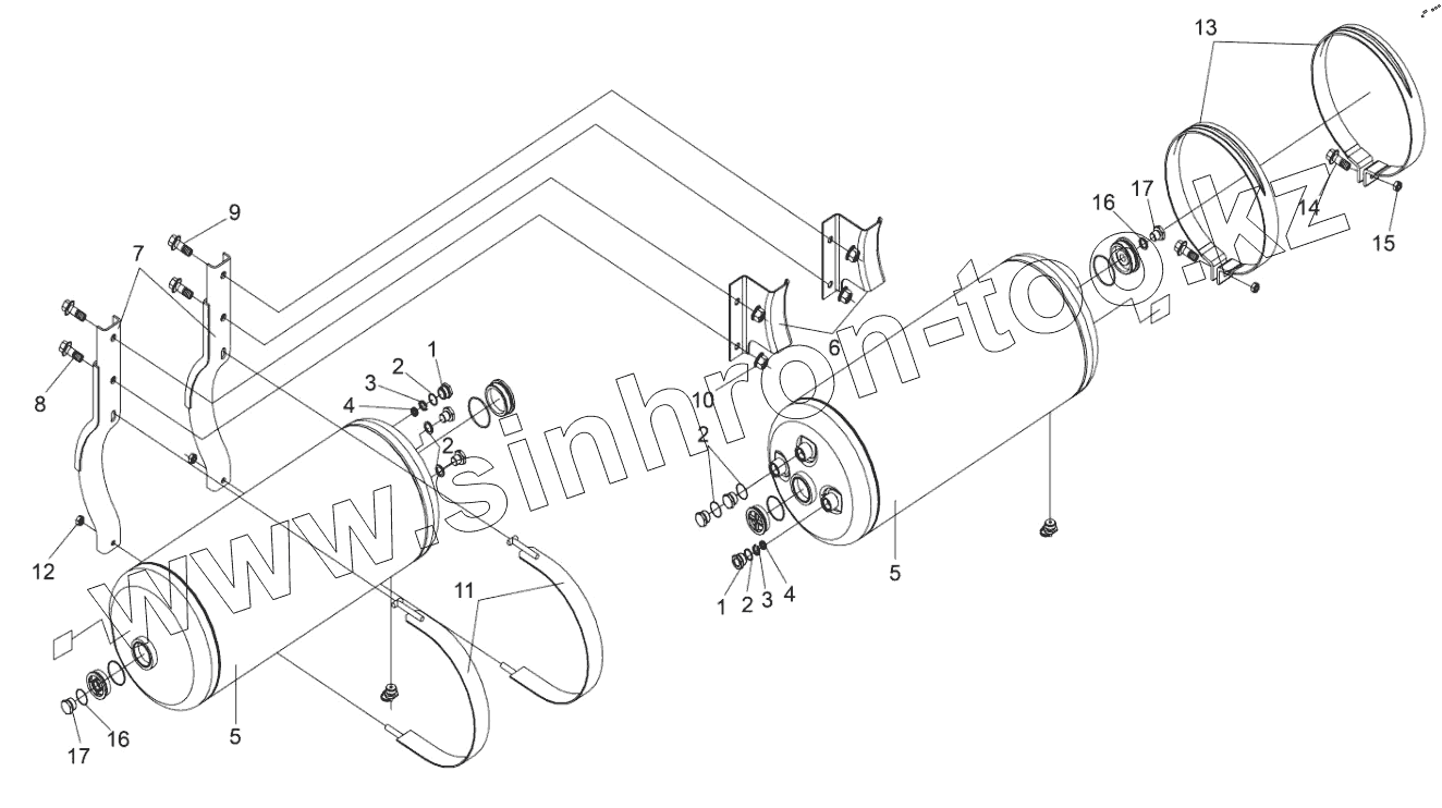 Каталог запасных частей к технике: FAW CA3250 (P66K24T1E5). Дополнительный воздушный резервуар в сборе