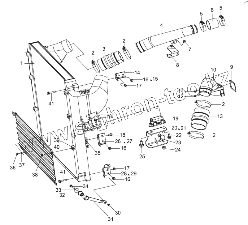 Каталог запасных частей к технике: FAW CA3250 (P66K24T1E5). Интеркулер, трубопровод, подвеска и экран