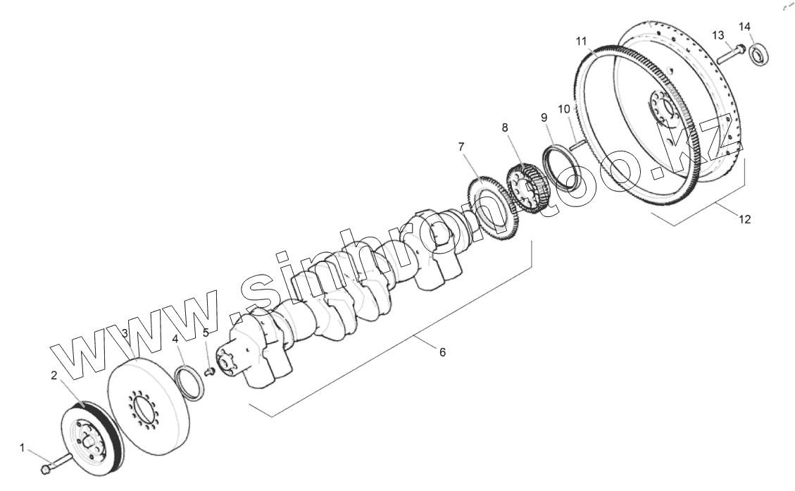 Каталог запасных частей к технике: FAW CA3250 (P66K24T1E5). Коленчатый вал с маховиком