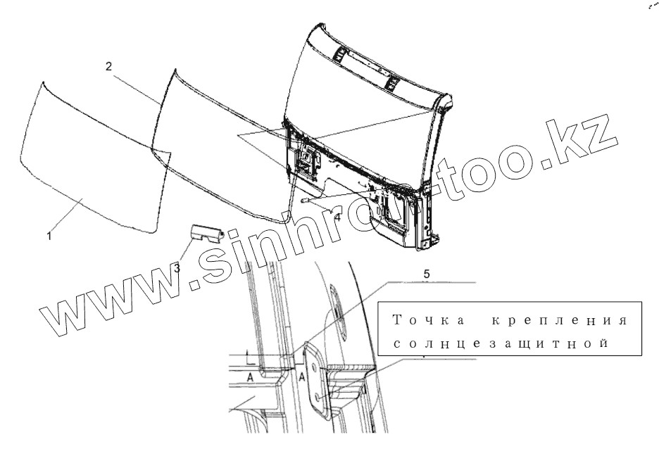 Козырек - переднее ветровое окно (монтаж по 5206003 - A01J / A)