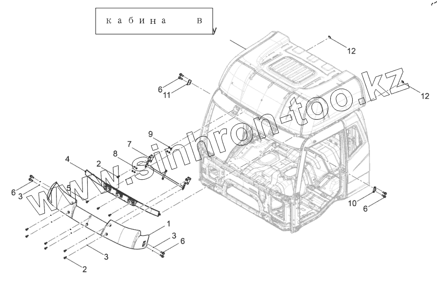 Каталог запасных частей к технике: FAW CA3250 (P66K24T1E5). Наружная накладка крыши кабины