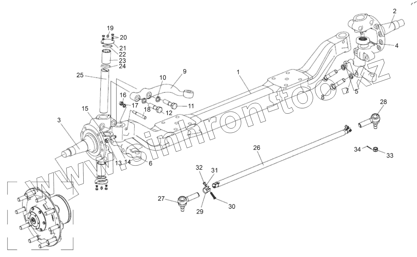 Каталог запасных частей к технике: FAW CA3250 (P66K24T1E5). Передний мост и поперечная рулевая тяга