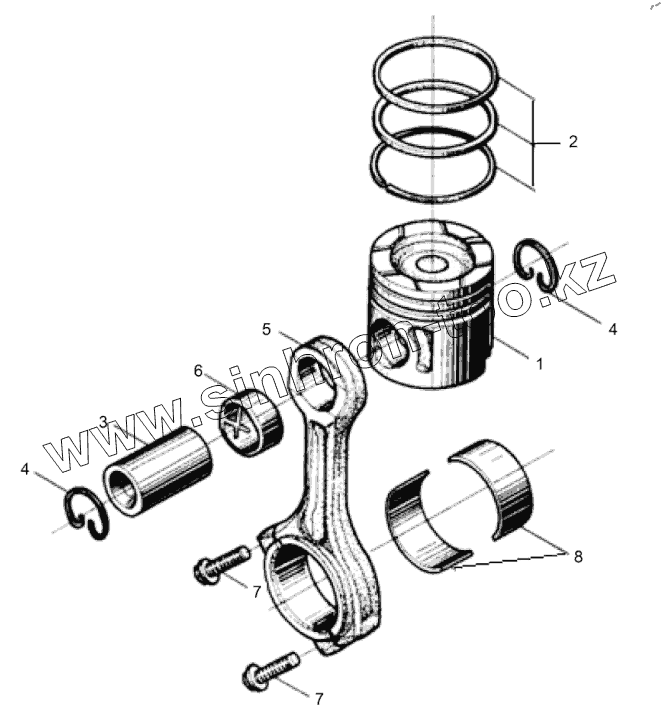 Каталог запасных частей к технике: FAW CA3250 (P66K24T1E5). Поршень и шатун