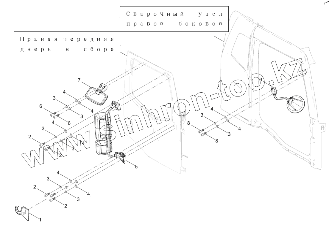 Каталог запасных частей к технике: FAW CA3250 (P66K24T1E5). Правое наружное зеркало заднего вида