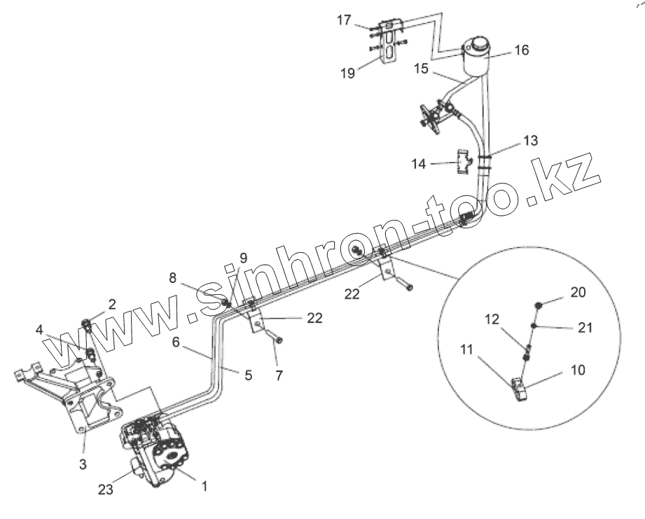 Каталог запасных частей к технике: FAW CA3250 (P66K24T1E5). Схема гидроусилителя руля