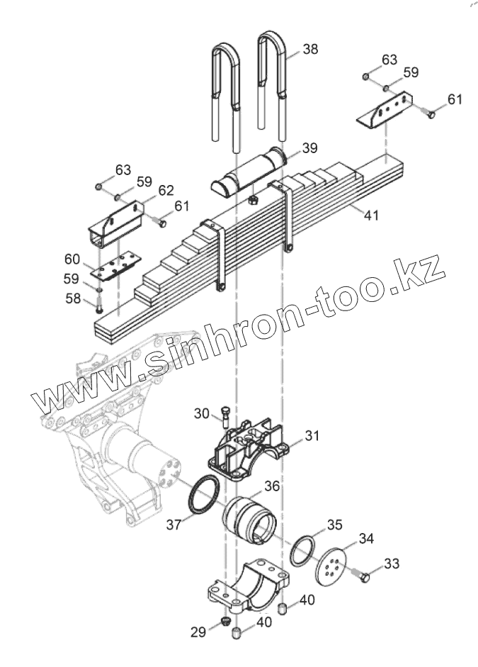 Каталог запасных частей к технике: FAW CA3250 (P66K24T1E5). Схема задней подвески