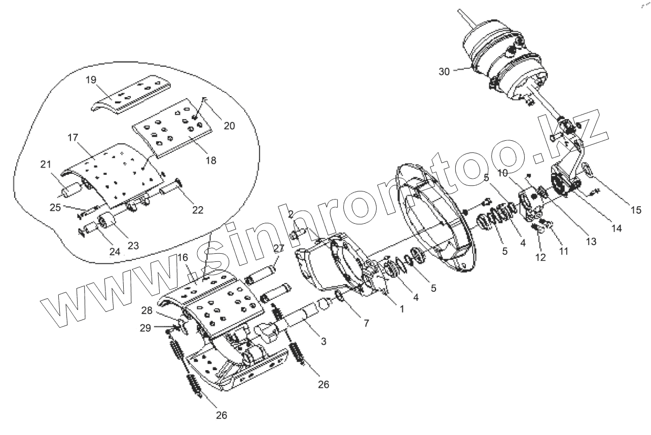 Каталог запасных частей к технике: FAW CA3250 (P66K24T1E5). Тормоз заднего моста