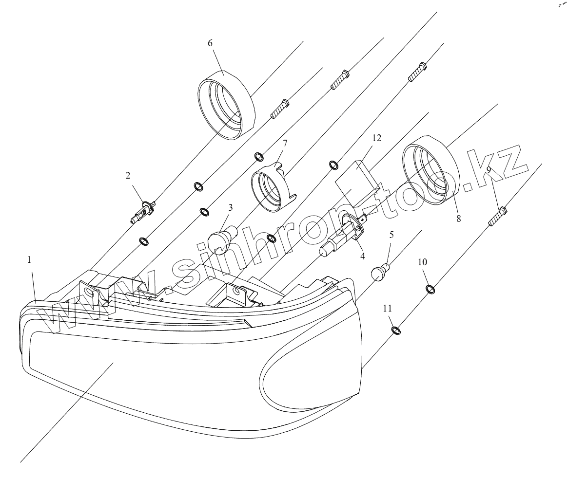 Каталог запасных частей к технике: FAW CA3251 (P66K2L2T1E5Z). Комбинация переднего освещения