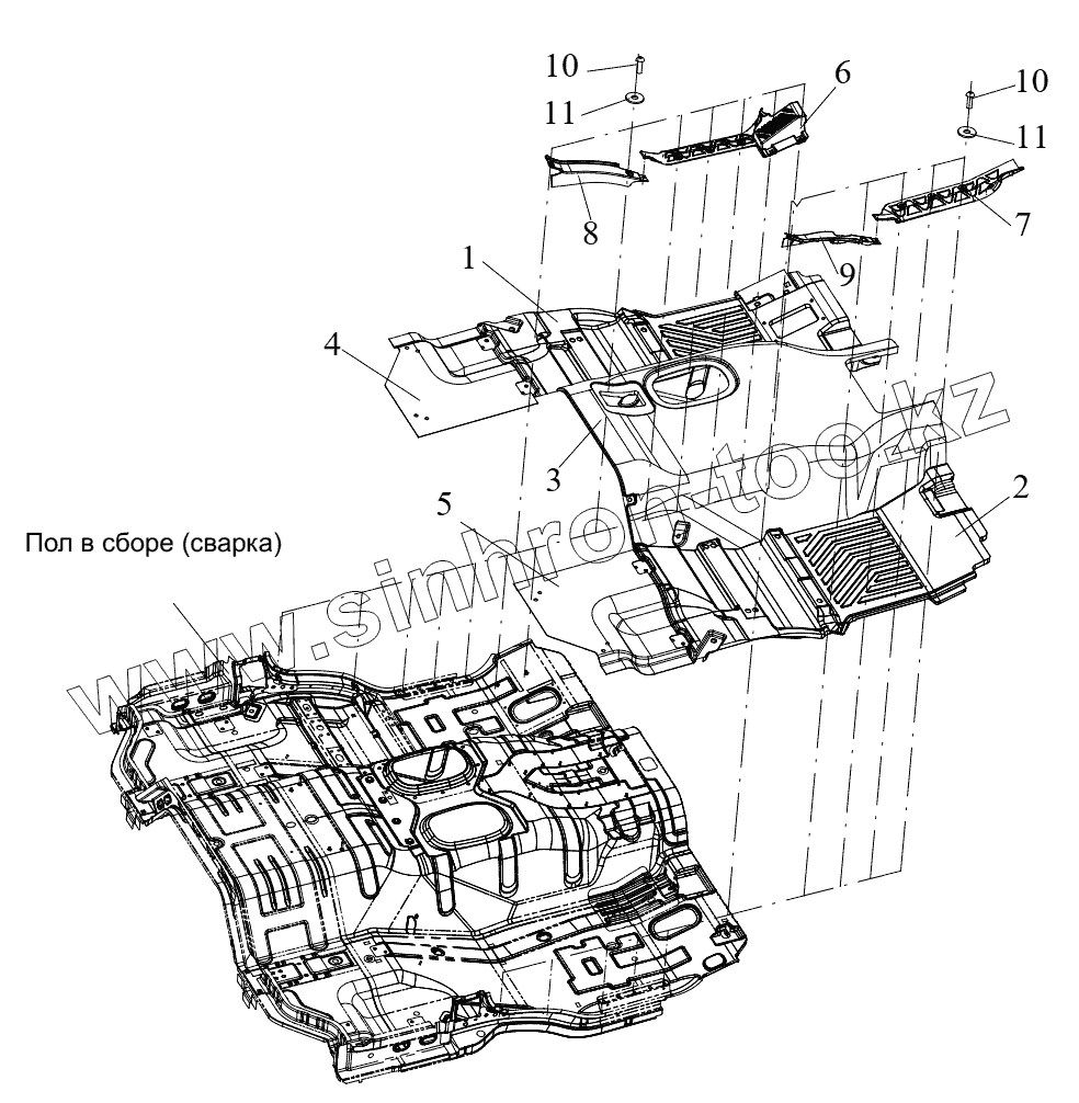 Каталог запасных частей к технике: FAW CA3251 (P66K2L2T1E5Z). Компоненты коврика