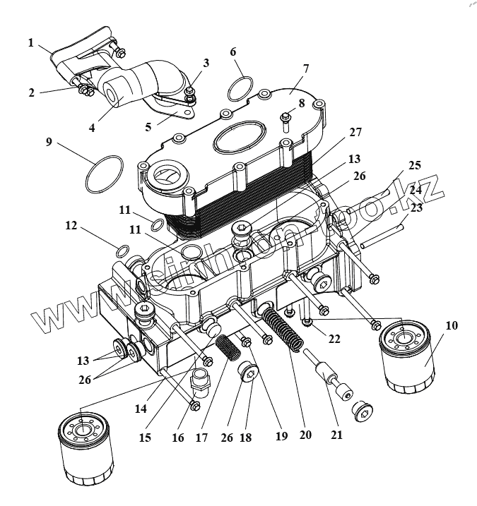Каталог запасных частей к технике: FAW CA3251 (P66K2L2T1E5Z). Масляный радиатор