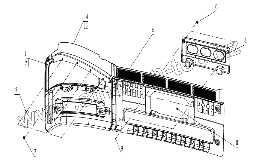 Каталог запасных частей к технике: FAW CA3251 (P66K2L2T1E5Z). Передний бампер (I)
