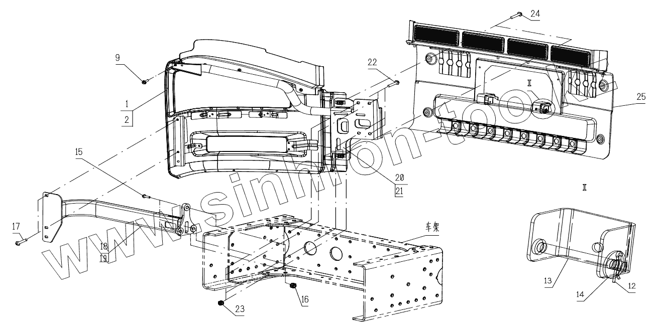 Каталог запасных частей к технике: FAW CA3251 (P66K2L2T1E5Z). Передний бампер (II)