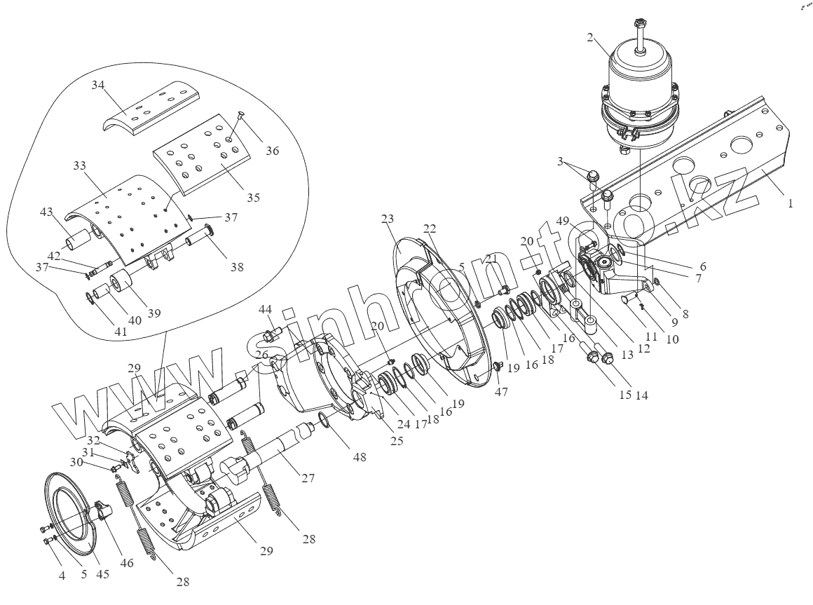 Каталог запасных частей к технике: FAW CA3251 (P66K2L2T1E5Z). Тормоз заднего колеса